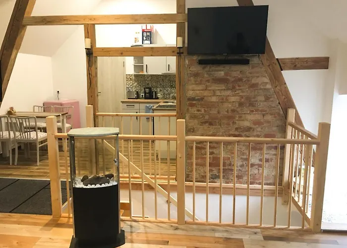 Zschampert Hof Bei Leipzig Ruhige Ferienwohnung Bauernhof Fur 4-5 Personen van 40 m^2, gelegen in Markranstädt, bevindt zich op 20 km afstand van de luchthaven Leipzig/Halle. Het appartement heeft draadloos internet, samen met parkeerplaatsen voor gasten, die met de auto reizen.